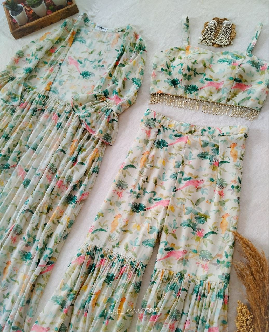 Fabric Sharara : Premium Georgette With Beautiful Print With Inner (Fully Stitched) Koti : Premium Georgette...