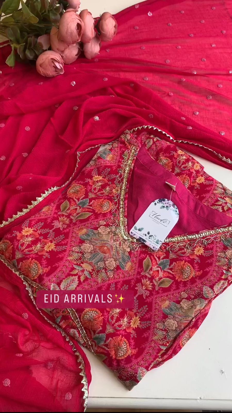 Embrace the vibrancy of our Floral Fiesta Salwar Suit. The beautifully adorned kurta featuring lively...