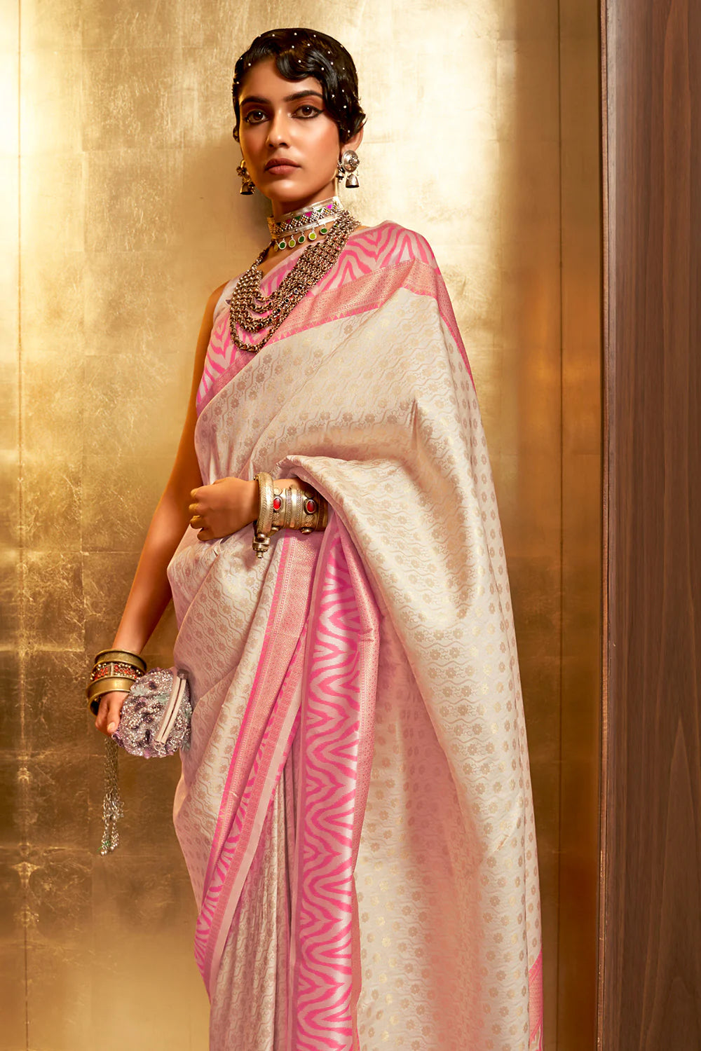 White And Pink Kanjivaram Saree