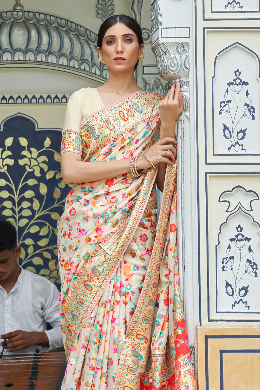 Soaked in grace and elegance this pashmina saree facilitated to outshine the beauty of every...