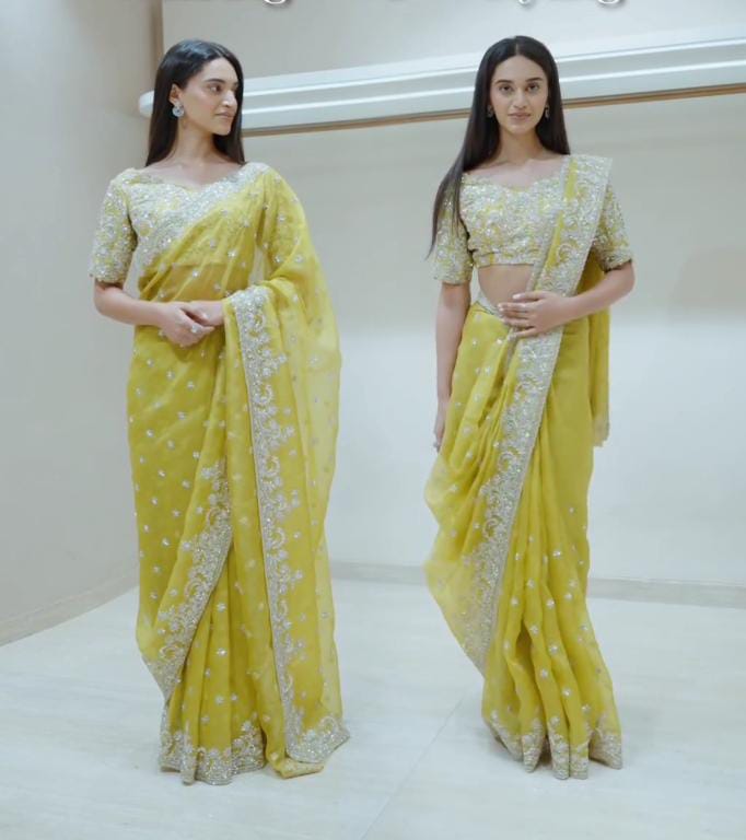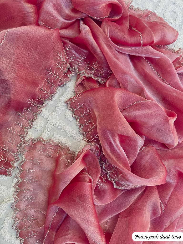 FABRIC DETAILS : SAREE : Premium quality jimmy choo organza fabric, border lace work pre-Draped...