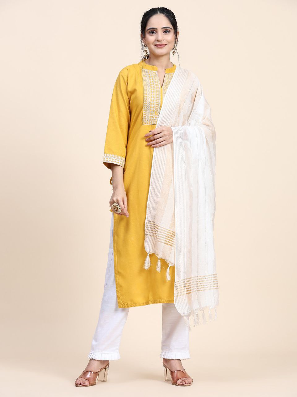 This elegant Designer Kurta Suit Set is crafted from heavy Viscose