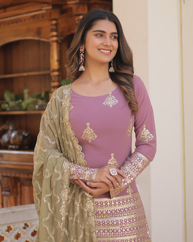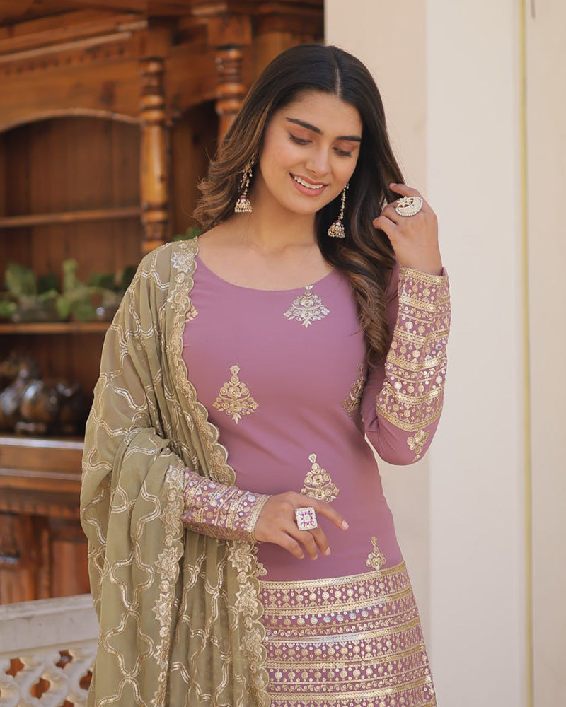 Beautiful Onion Color Georgette Three Piece Plazzo Suit