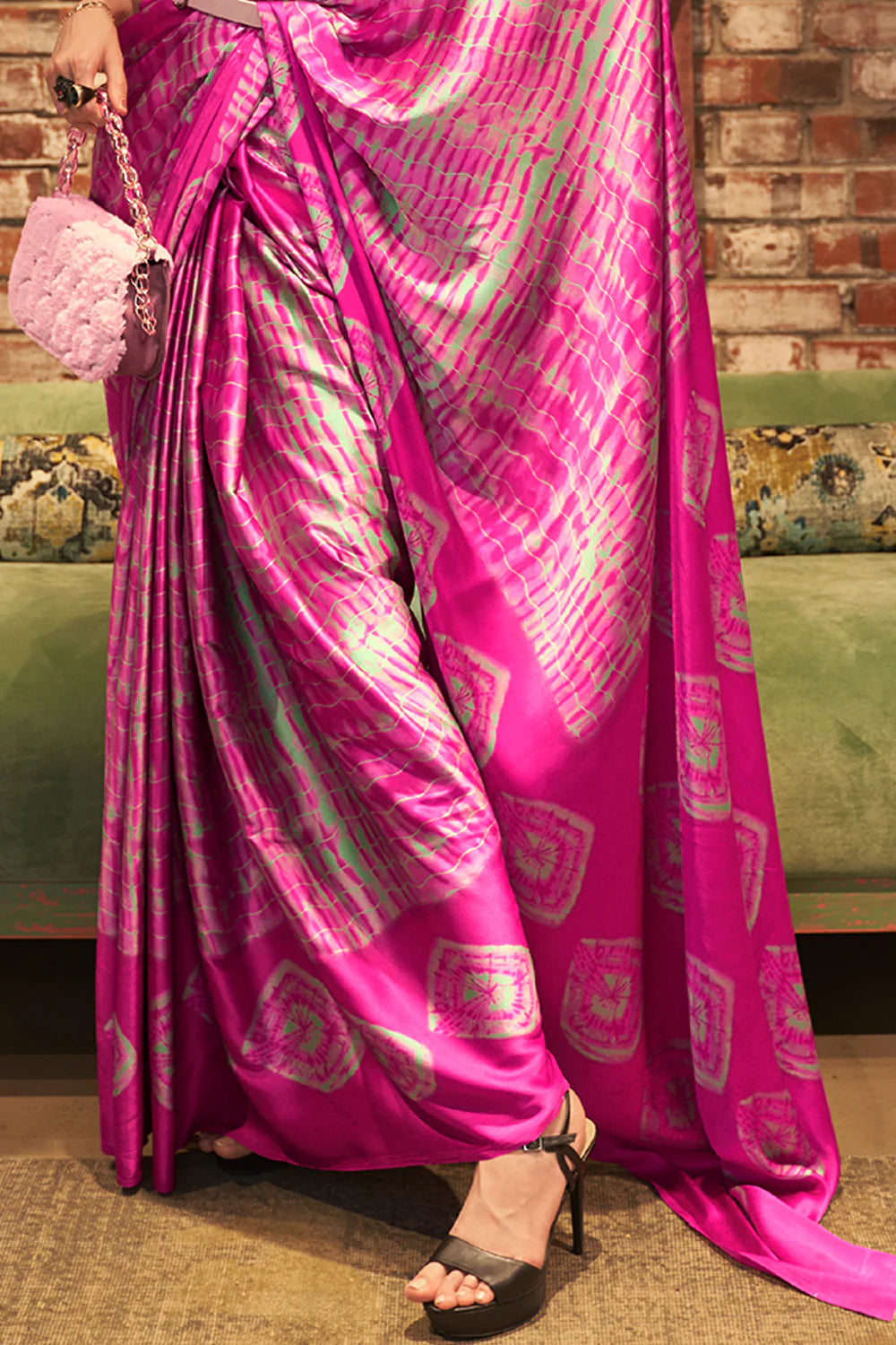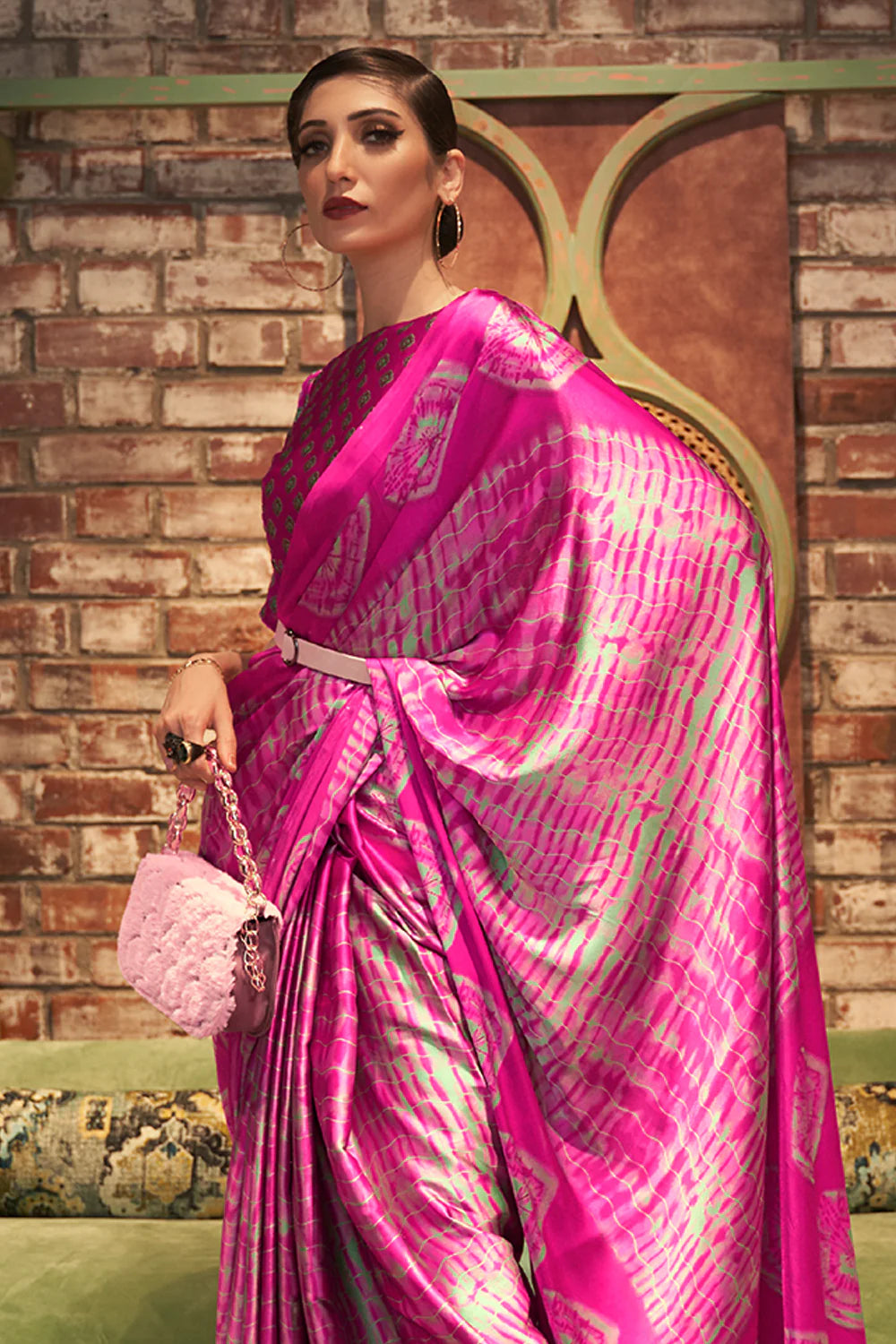 Cerise Pink Satin Silk Saree