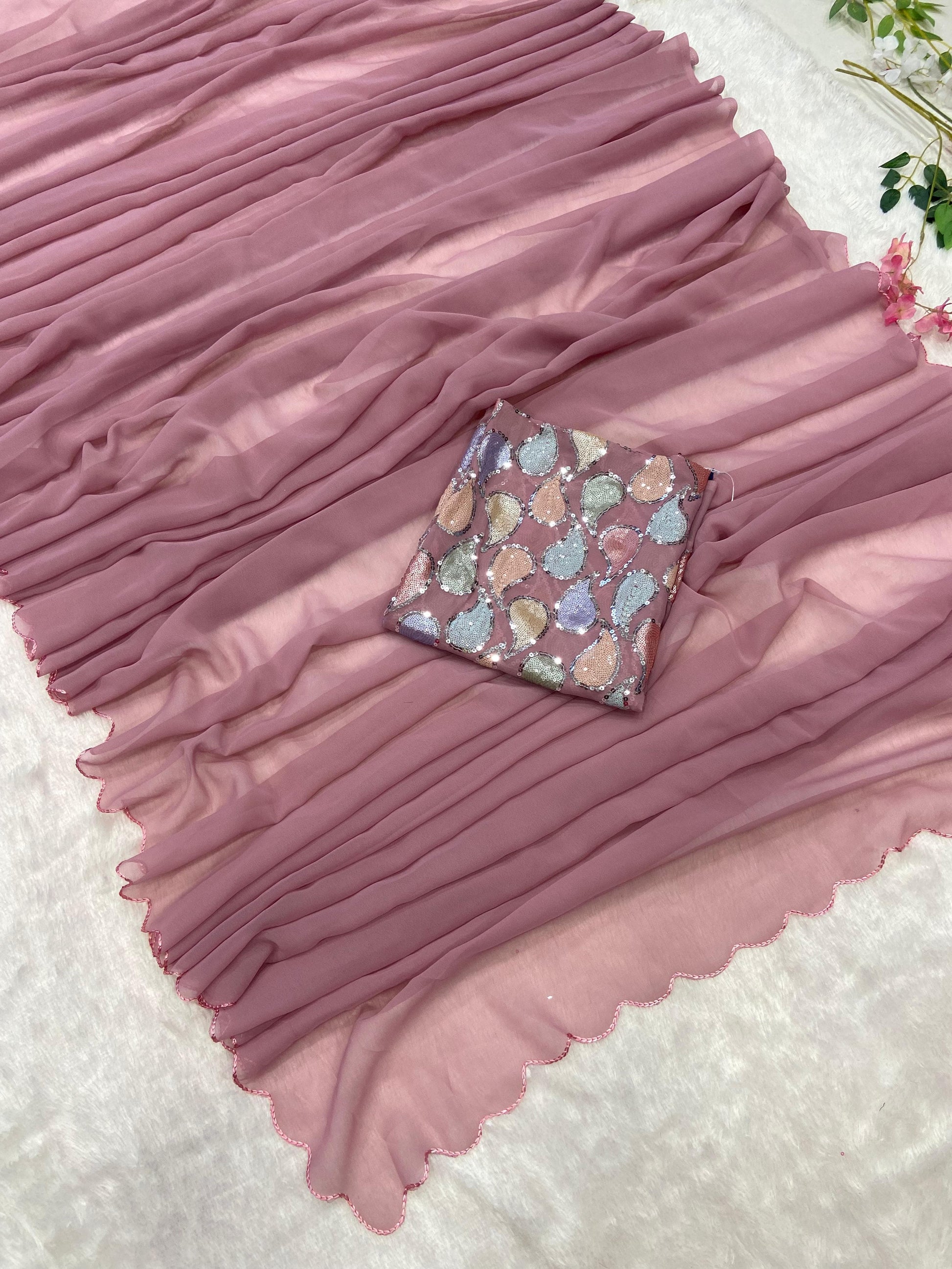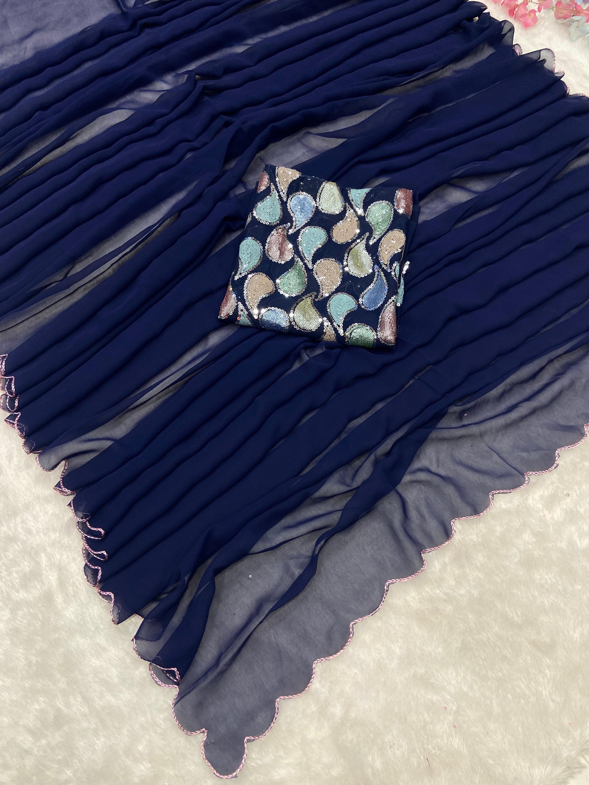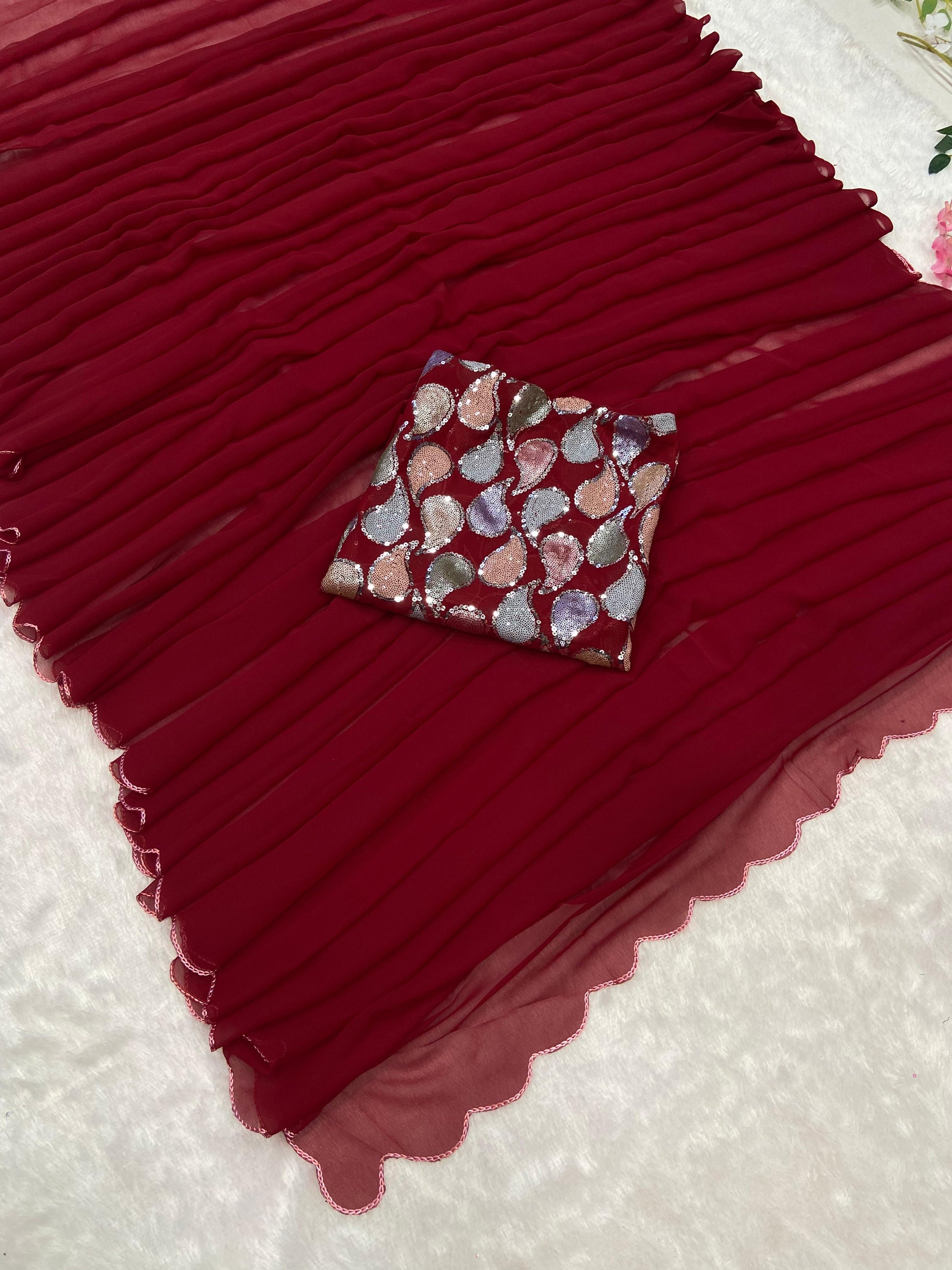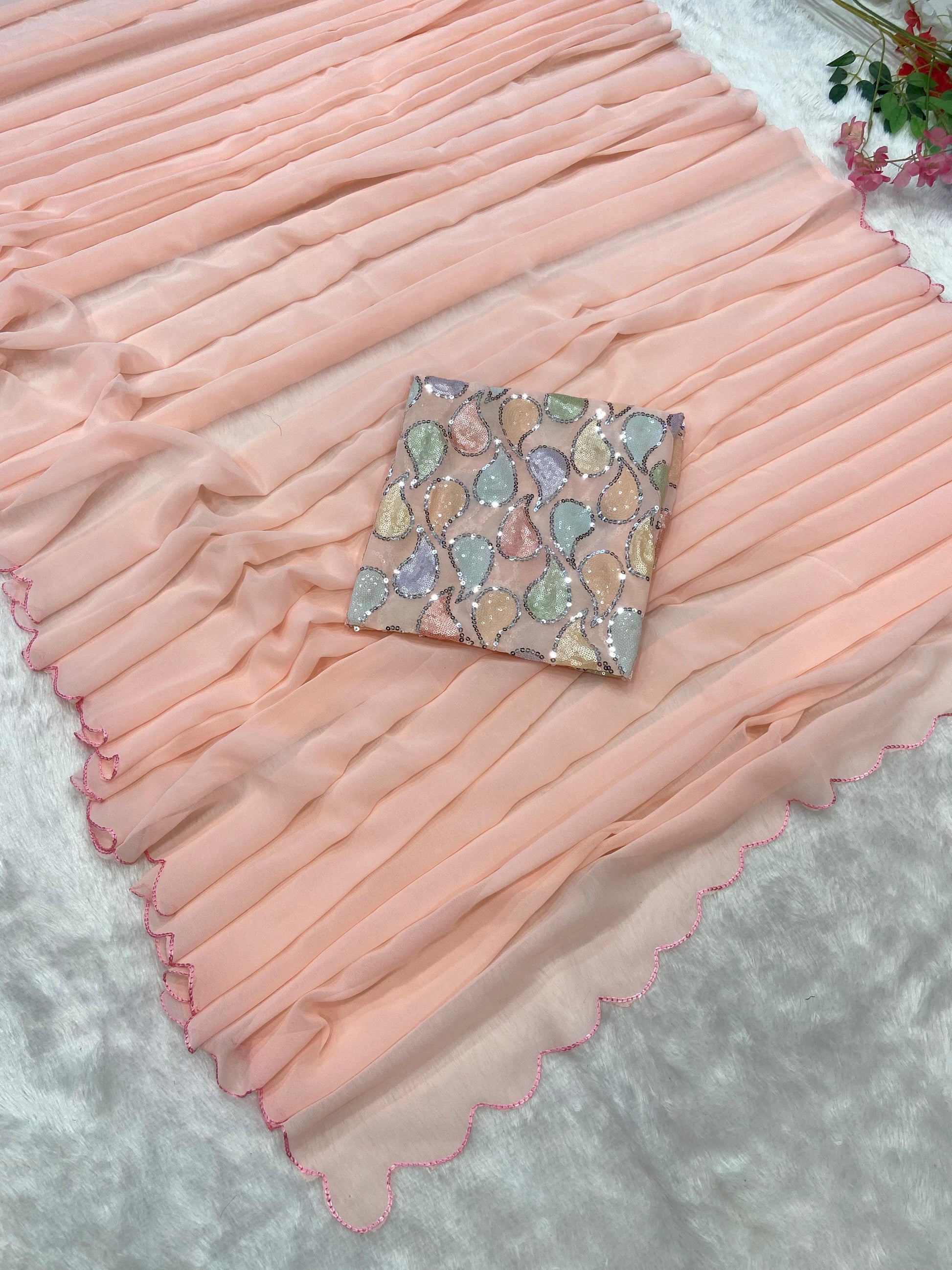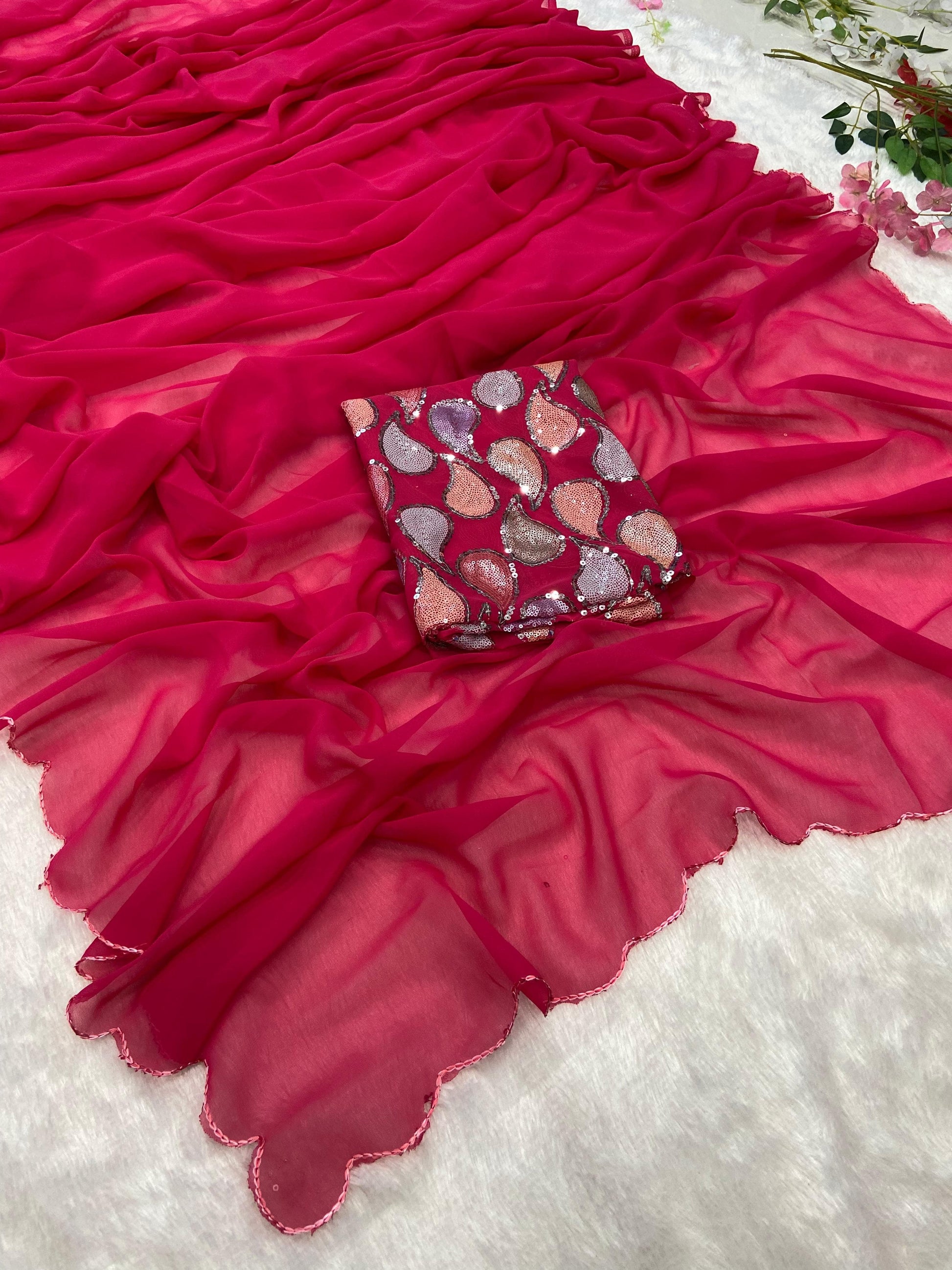 Saree : Premium Georgette Embellished With Beautiful Arca Cutwork Border