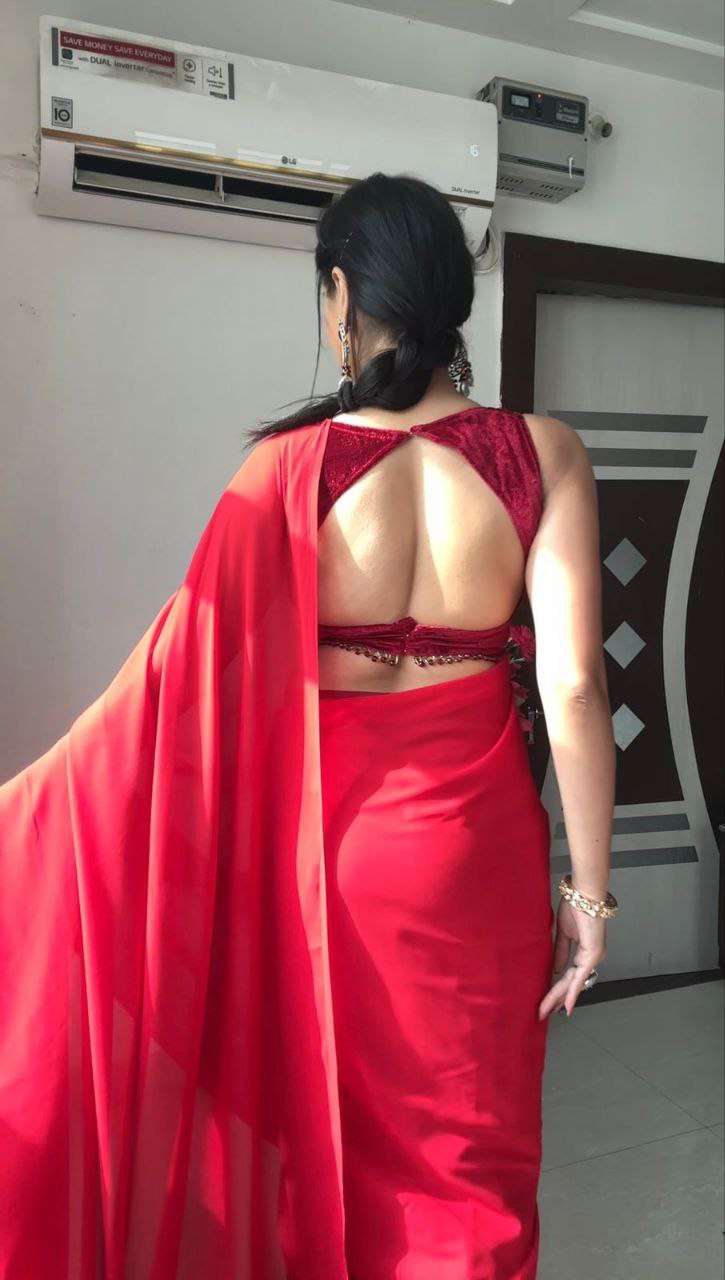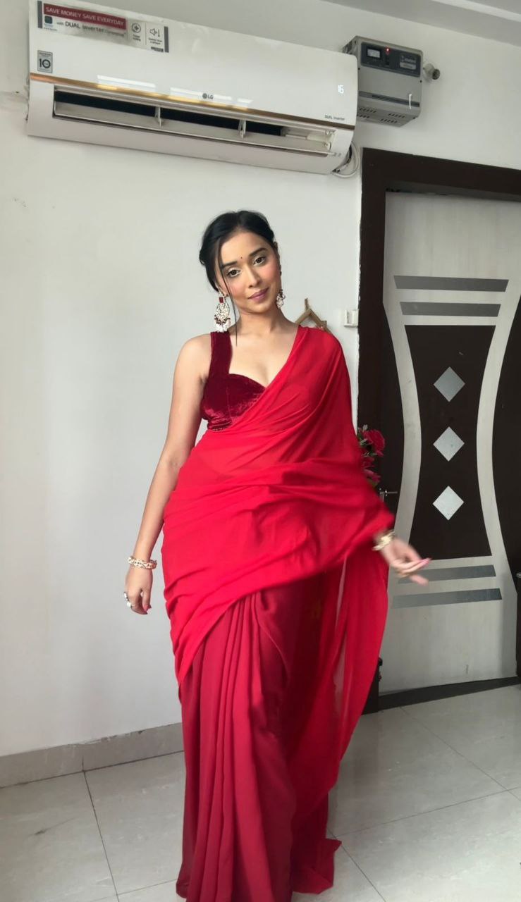 Elegant Red Ready To Wear Saree