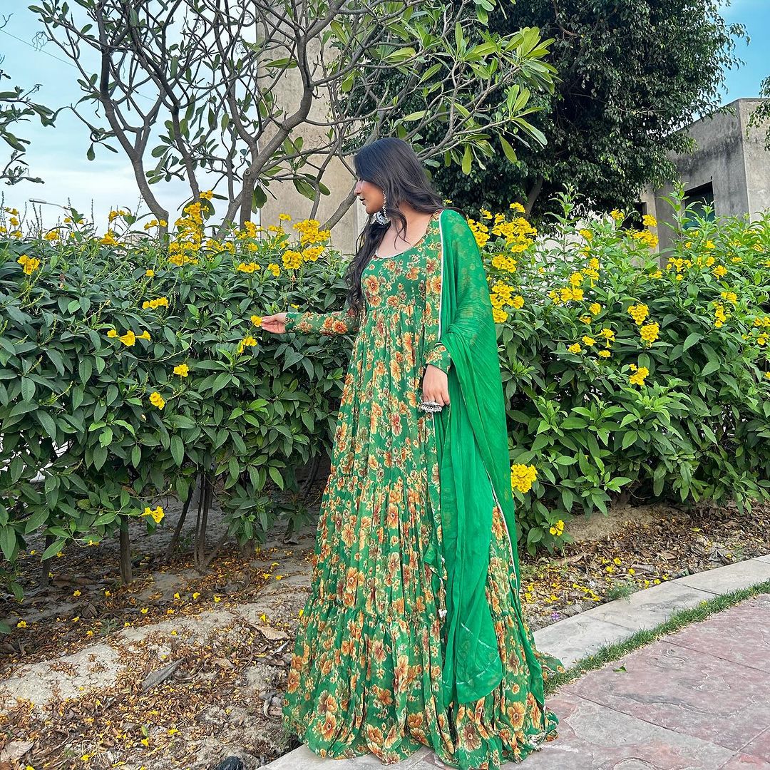 ANARKALI : Digital printed pure georgette silk with huge flare.