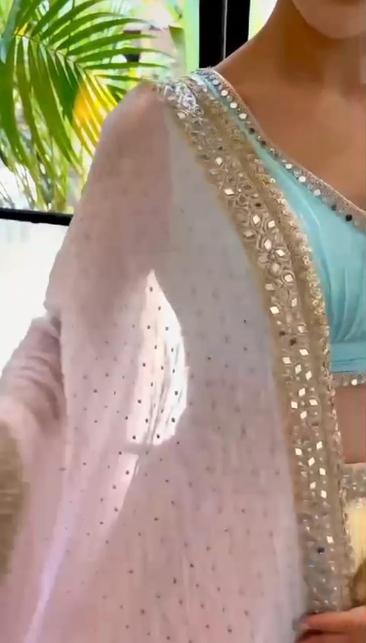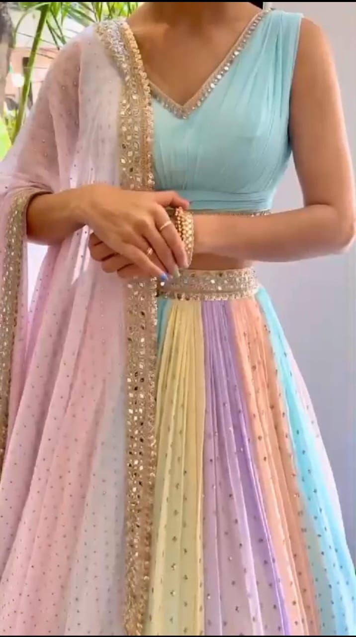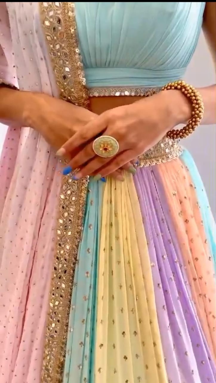 LEHENGA : Heavy georgette lehenga with sequins and paper mirror work.