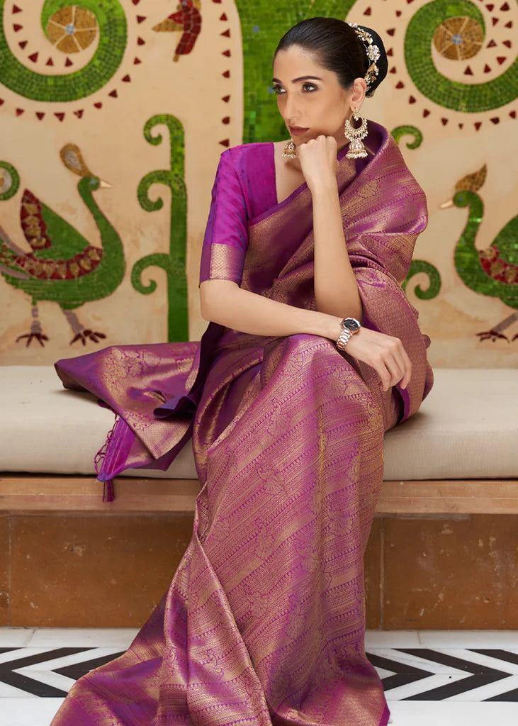 Royal Golden Purple Kanjivaram Silk Saree