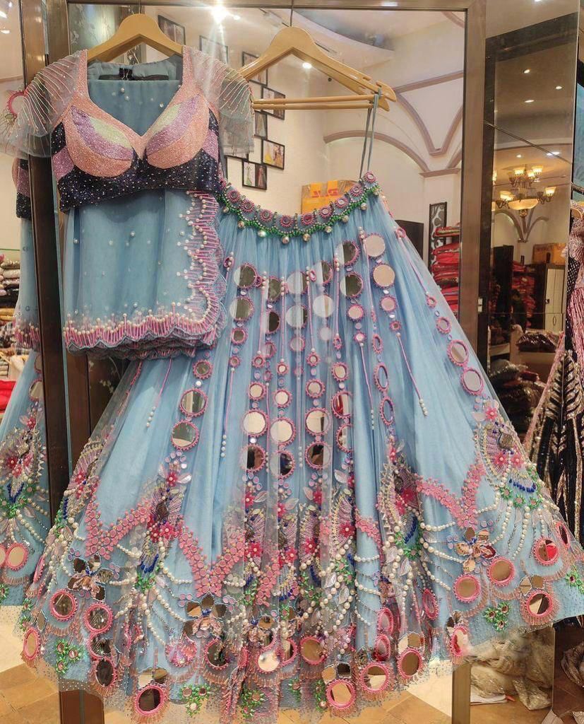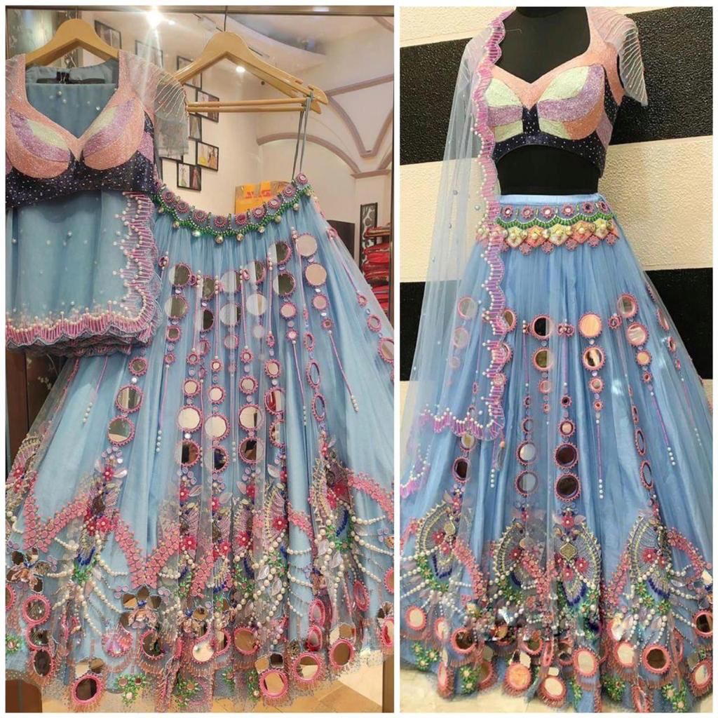 Work: Real mirror, pearl work and sequence embroidery work with cancan & canvas patta