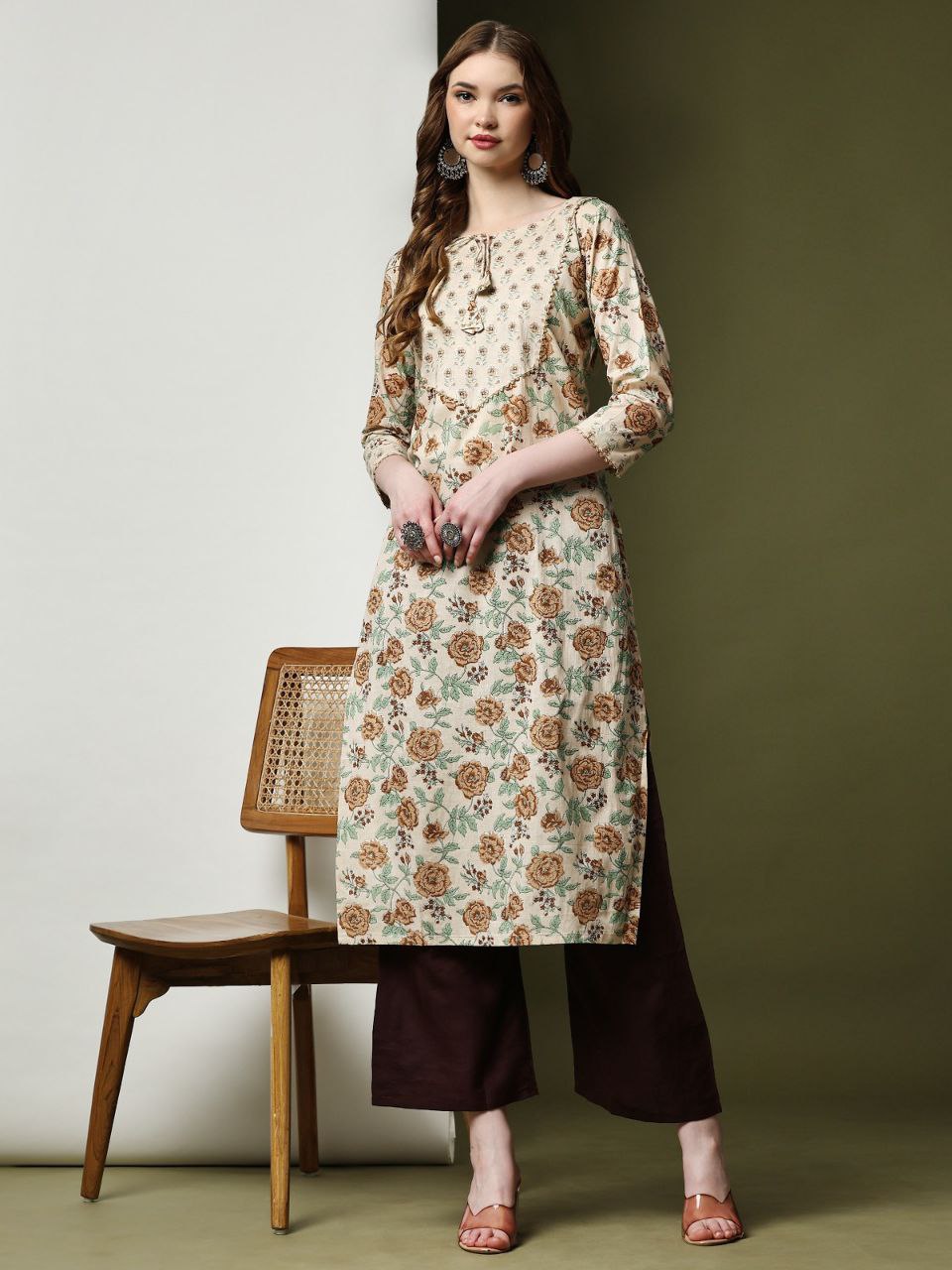 This beautiful Designer Kurta Bottom Set in beige is crafted from heavy Jaipuri cotton fabric, featuring vibrant printed patterns. Ideal for casual or semi-formal occasions, this set combines comfort with a stylish, traditional touch.