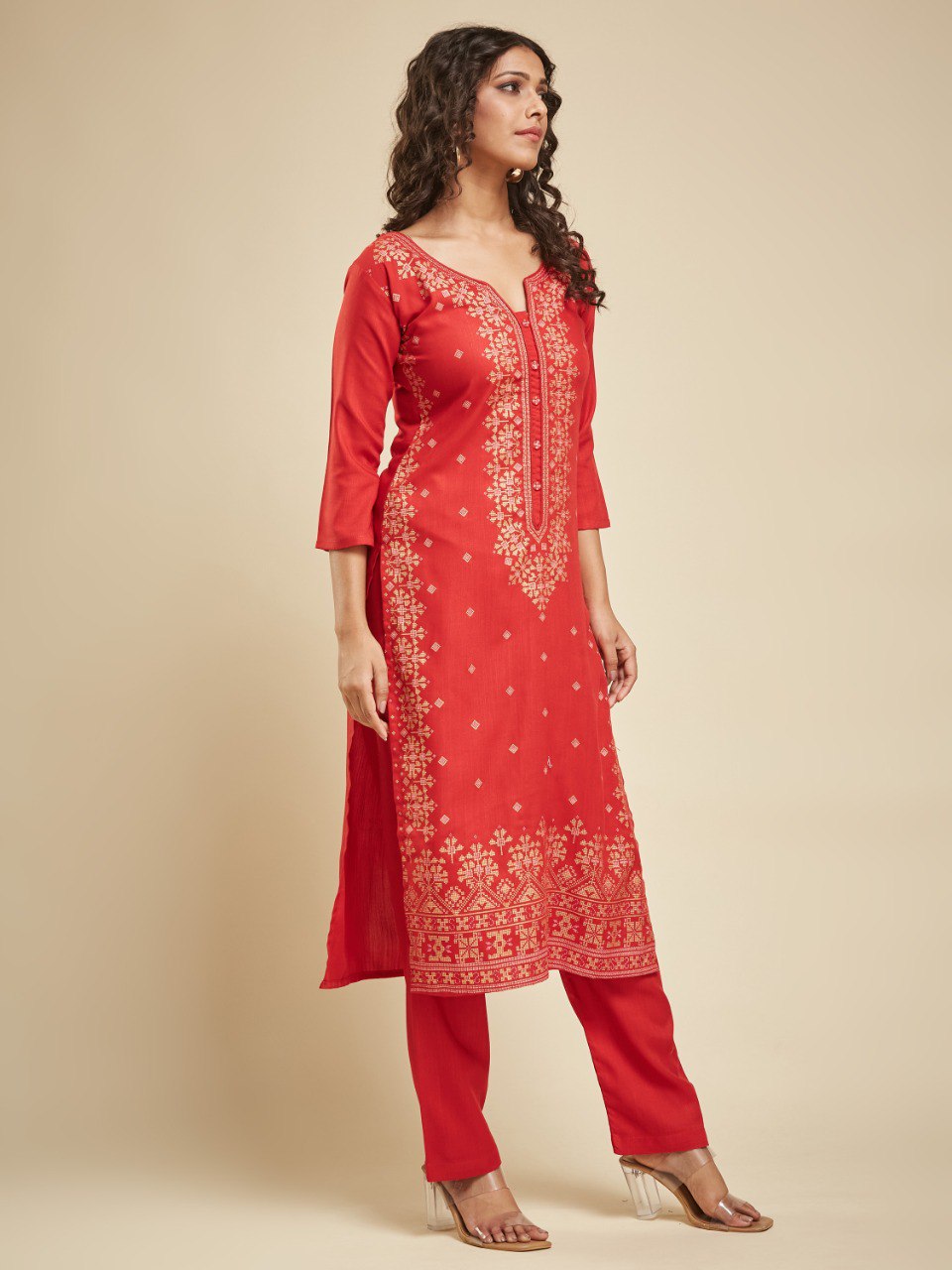 This beautiful Designer Kurta Suit Set is crafted from heavy Viscose Chanderi fabric, featuring elegant embellishments with premium prints. It offers a sophisticated blend of style and comfort, making it perfect for various occasions.